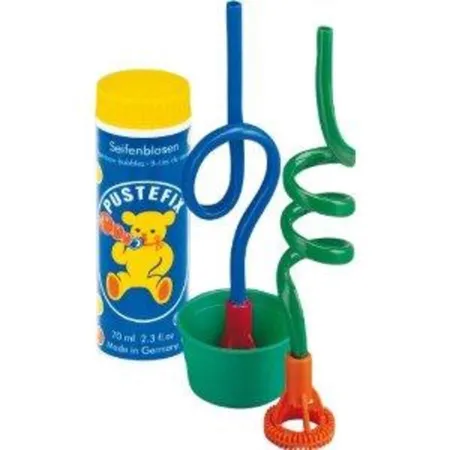 Enthält: Bubbel-Halm Looping, Bubbel-Halm Spirale, Flüssigkeitsschale, PUSTEFIX Grosspackung mit 70ml Seifenblasenflüssigkeit.