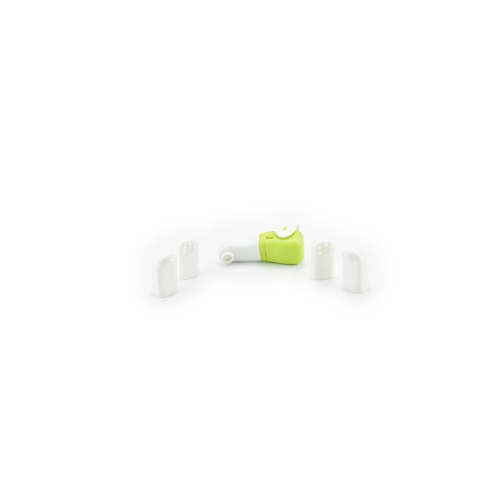 Das Digitus Fingermassagegerät unterstützt die eigenen Finger und ist der der ideale Begleiter für unterwegs. Einfach über einen Finger gestülpt und mit dem passenden Aufsatz genutzt, ist das Massagegerät einsatzbereit und kann vielseitige Anwendung finden. Dank seines ergonomischen Designs liegt das Fingermassagegerät angenehm in der Hand und lässt sich einfach anwenden. Mit den 5 unterschiedlichen Aufsätzen können Sie gezielt verschiedene Bereiche massieren. Das Fingermassagegerät ist klein und kompakt, sodass es problemlos in jeder Tasche Platz findet. Ob im Büro oder auf Reisen – mit unserem Massagegerät haben Sie immer eine wohltuende Massage zur Hand.